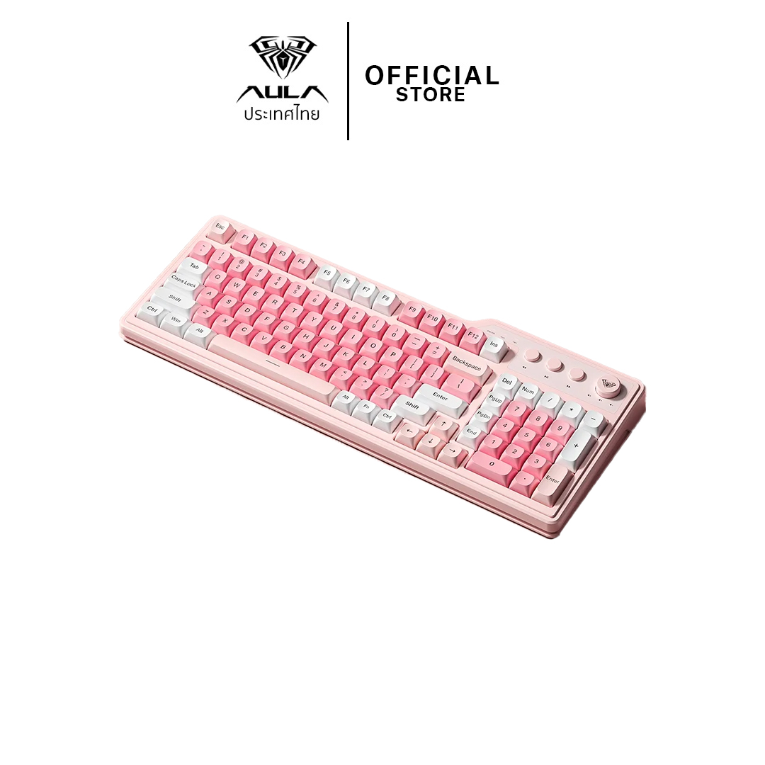 WIRELESS KEYBOARD (คีย์บอร์ดไร้สาย) AULA F3099 (PINK) TRI-MODE